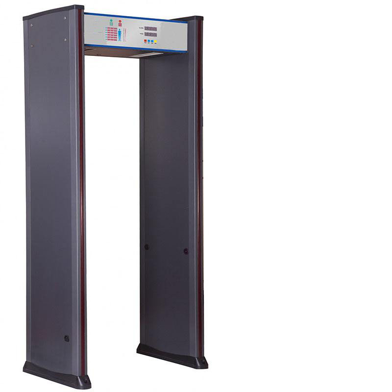 在門內(nèi)建立電磁場(chǎng),人體攜帶金屬物品通過門時(shí)能產(chǎn)生報(bào)警的裝置,能準(zhǔn)確檢測(cè)出人體攜帶或裝在包盒內(nèi)的金屬物品或含金屬物品,如各種管制刀具、武器、金屬制品、電子產(chǎn)品等含金屬物品。
