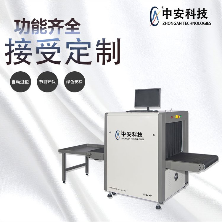 x光安檢機是借助于輸送帶將被檢查行李送入X射線檢查通道而完成檢查的電子設備。行李進入X射線檢查通道,將阻擋包裹檢測傳感器,檢測信號被送往系統(tǒng)控制部分,產(chǎn)生X射線觸發(fā)信號,觸發(fā)X射線 的射線源發(fā)射X射線光束穿過輸送帶上的被檢物品,X射線被被檢物品吸收,最后轟擊安裝在通道內(nèi)的半導體探測器。探測器把X射線轉(zhuǎn)變?yōu)樾盘?,這些很弱的信號被放大,并送到信號處理機箱做進一步處理,這些信號處理后就通過顯示屏顯示出來。